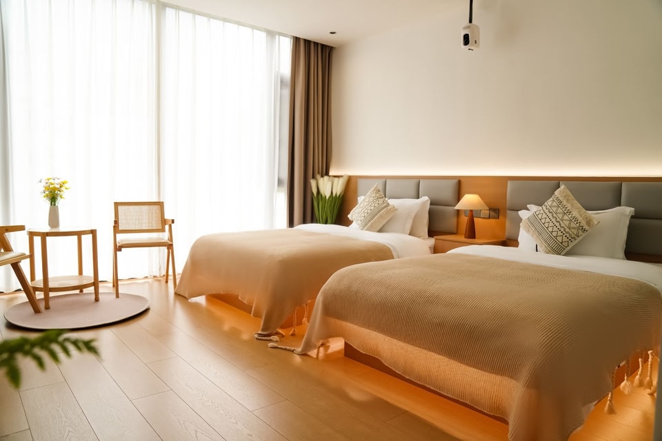 The Valley Inn is located in the picturesque Wangxian Valley, which is not only a poetic habitat for Eastern aesthetics, but also an excellent place for spiritual exploration. The geographical location is unique, only 1.7 kilometers away from the enchanting Wangxian Valley scenic area, adjacent to Wangxian's hometown and Shuiyuan camping site, allowing you to fully enjoy the gifts of nature. The interior decoration of the homestay is unique, with a light luxury wooden style as the main theme, creating a warm and comfortable living environment. The warm toned room design makes people feel the warmth and tranquility of home. Four different room types to meet all your imaginations of a better life. Here, warm wine and brew tea, converse with the mountains, listen to the whispers of the wind, and seek peace of mind. Taste the slow life of flowing water, let time quietly flow here. Even during a lazy day, one can feel the fulfillment and beauty of life in the alternation of sunrise and sunset. Immerse yourself in the mountains and rivers, stay in the mountains and rivers, and the Valley Inn allows you to have zero distance contact with nature. When night falls, the wind blows through the skylight, and when you look up, you see the bright moonlight, bringing you endless poetry. Here, please put down your hurried steps and enjoy a moment of tranquility. Lying down and waiting for the Milky Way to enter your dream, let the twinkling starlight become the warmest ambient light in tonight's dream. In the valley small stack, let us unexpectedly encounter beauty!