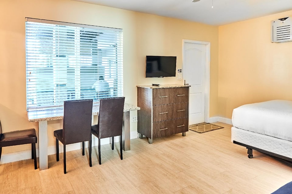 Caribbean Resort by the Ocean se encuentra en el área de Hollywood Beach en Hollywood, en el Strip y en la playa. Aquellos que deseen ir de compras pueden visitar Centro comercial Aventura Mall y Dania Pointe, mientras que quienes quieran apreciar la belleza natural de la zona pueden ir a Hollywood Beach y Las Olas Beach. ¿Quieres asistir a un evento o partido? Consulta el calendario de Gulfstream Park o Estadio Hard Rock. En los alrededores encontrarás muchas oportunidades para hacer kayaks, buceo y snorkel, y así saciar tu sed de aventuras en el agua. Hotel en la playa con cafetería y bar o loungeEste hotel ofrece un bar o lounge, una cafetería y estacionamiento. El acceso a wifi en las áreas comunes es gratuito. También dispone de servicio de concierge, lavandería en las instalaciones y asistencia para la compra de tours o entradas. Caribbean Resort by the Ocean tiene 28 opciones de hospedaje con aire acondicionado, acceso por pasillos exteriores, tabla de planchar con plancha y ventilador de techo. Todas las opciones de hospedaje tienen mobiliario diferente. En este hotel de 3 estrellas, las opciones de hospedaje incluyen cocina con refrigerador con congelador, parrilla de estufa, microondas y utensilios de cocina. Los baños están equipados con regadera. Los huéspedes pueden navegar en línea gracias al acceso a wifi gratis. Todas las habitaciones disponen de televisión de pantalla plana. Se proporciona servicio de limpieza todos los días. Las siguientes actividades de recreación se pueden practicar en la propiedad o en los alrededores. Es posible que apliquen cargos.