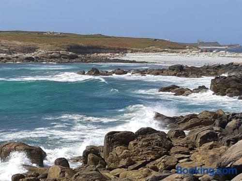 Offering sea views, Maison bord de mer is an accommodation located in Plouguerneau, 32 km from Brest Naval Museum and 30 km from National Botanical Conservatory of Brest. This beachfront property offers access to a terrace and free private parking.