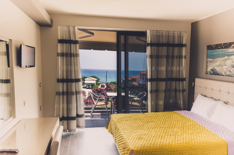 Beachfront Paradise in Skala KefaloniasLuxurious Accommodations: Experience stunning views of the Ionian Sea from your balcony in our air-conditioned rooms equipped with modern amenities.Relaxation and Dining: Unwind by the outdoor pool or enjoy a delicious meal at our sea-view terrace restaurant. Savor Mediterranean flavors and refreshing drinks from the poolside snack bar.Convenience and Accessibility: With free WiFi, on-site mini market, and proximity to bus stop and key attractions like Poros Port, Paspalis Hotel offers the perfect blend of comfort and convenience.Book your stay at Paspalis Hotel now for a memorable beach getaway in Kefalonia!