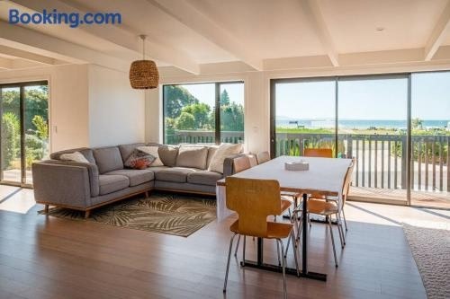 Set in Pohara in the Tasman region, Pohara's Seaside Accommodation features a patio and garden views. Featuring sea and mountain views, this holiday home also has free WiFi. Outdoor seating is also available at the holiday home.
